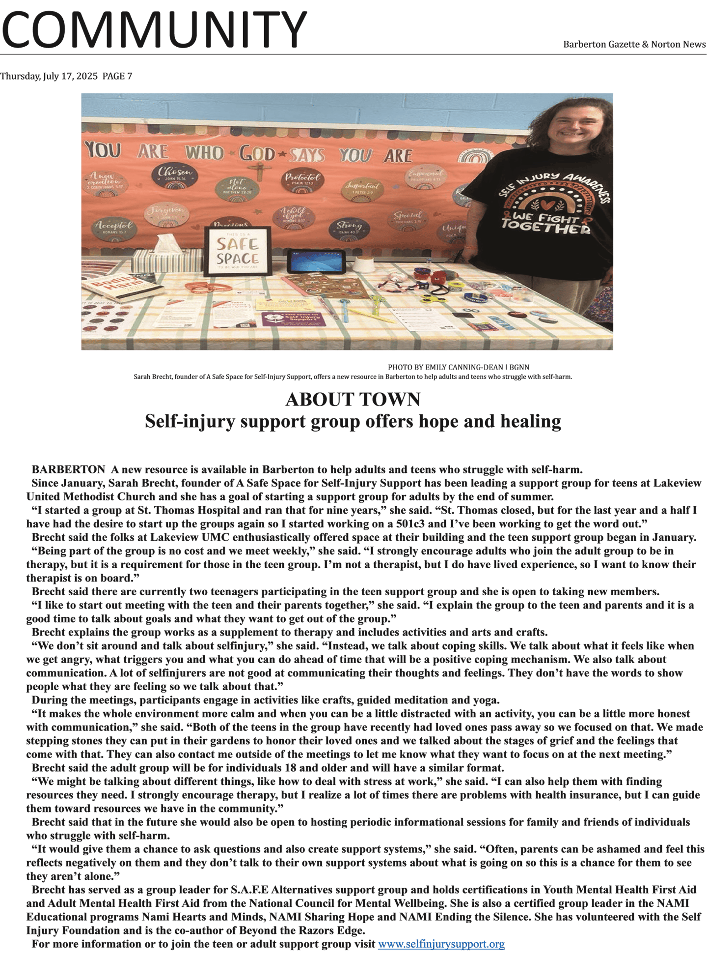 Sign up to recieve Updates from A Safe Space for Self Injury Support